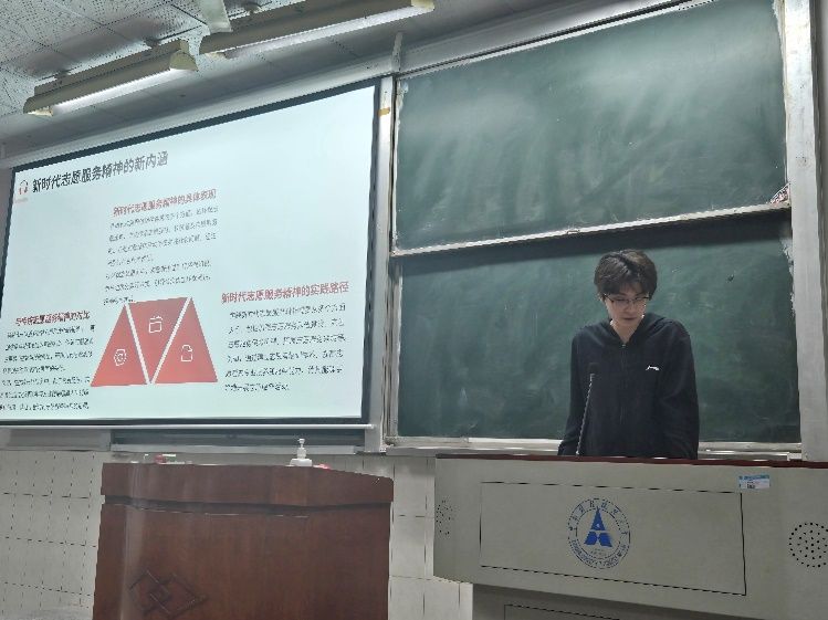 班会伊始,李佳欣通过详实的案例和深入浅出的讲解,阐述了志愿服务精神“奉献、友爱、互助、进步”的深刻内涵,让同学们对志愿服务精神有了更清晰的认识。