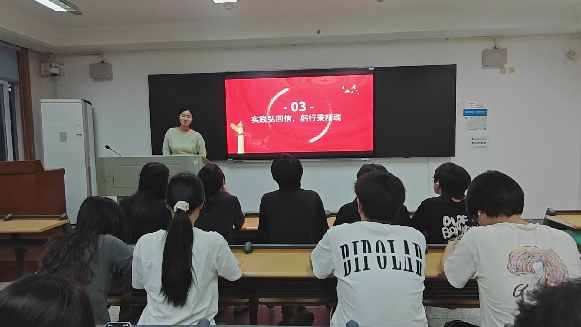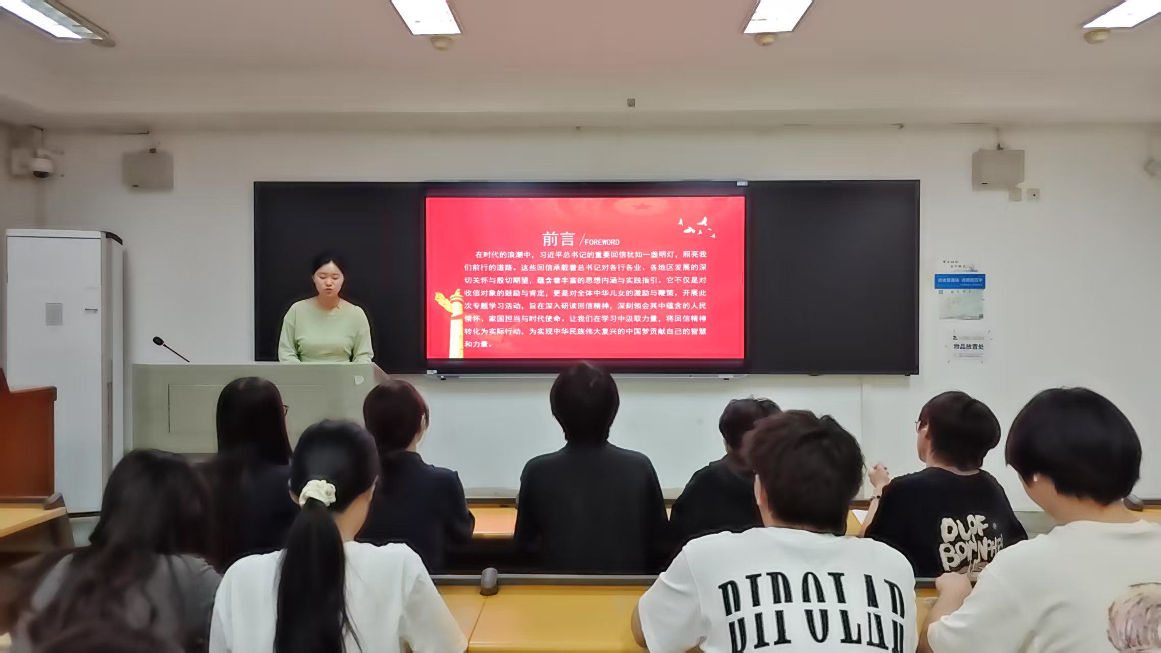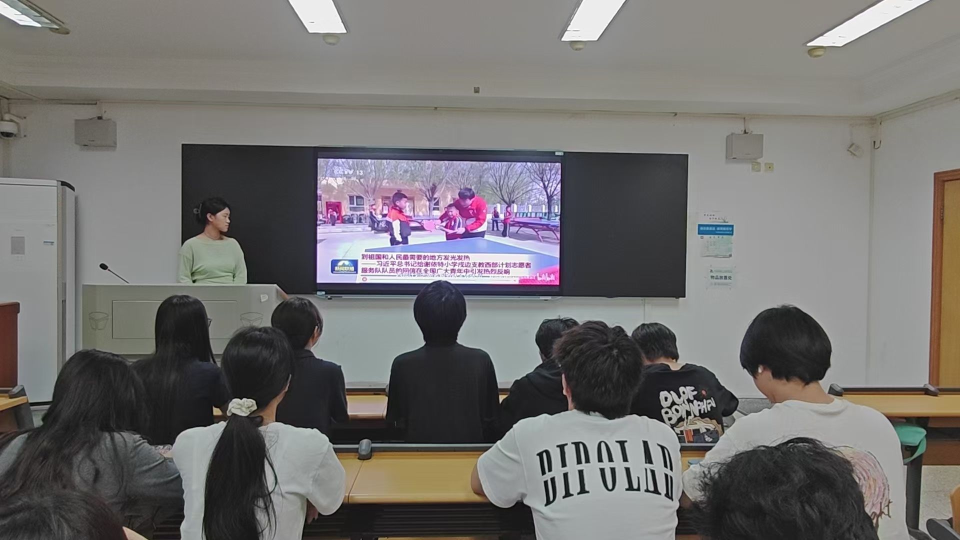活动伊始,主持人任诗雨带领同学们共同观看了学习习近平总书记给谢依特小学戍边支教西部计划志愿者服务队队员重要回信精神特辑,通过影像资料,大家真切感受到习近平总书记对青年一代的殷切期望和深情关怀。视频中的故事和人物,激发了同学们内心的共鸣,让大家深刻认识到自身肩负的时代使命。