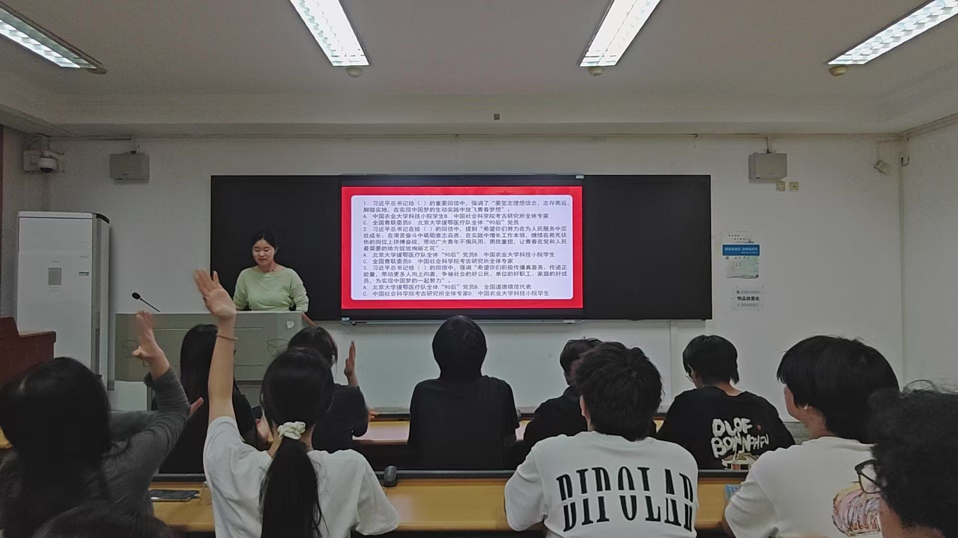 接着,现场组织了一场紧张刺激的抢答赛,题目围绕回信精神展开,涵盖了重要理念、时代要求等多个方面。同学们积极踊跃,思维敏捷,在激烈的抢答中深化了对回信精神的理解,进一步领悟了其中蕴含的深刻内涵和价值导向。