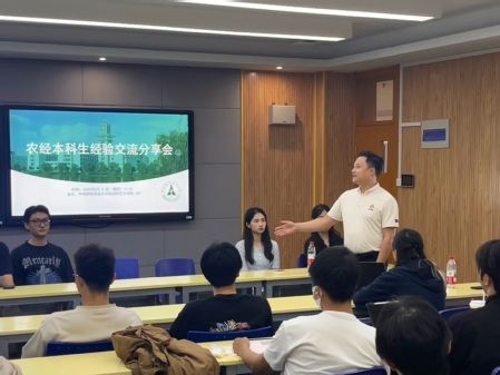 交流会伊始,史战文老师简要对农林经济管理专业大四学子的毕业去向进行了介绍,并对今天到场的各位优秀学生代表所取得的成就表示诚挚祝福。史战文老师鼓励22级同学们能够充分利用好这次交流的机会,在师兄师姐的分享之中有所收获。