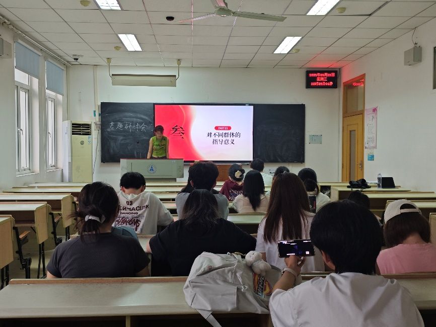 接下来,宋思轩还跟同学们一起探讨了回信精神对不同群体的指导意义。首先对青年群体:要树立正确三观,积极投身国家建设,以西部计划志愿者为榜样;然后对科研工作者:要勇攀科技高峰,实现科技自立自强;最后就是对经贸专业学生:要将专业知识与国家战略相结合,服务区域协调发展。