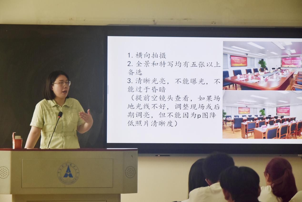 雕琢摄影技艺,点亮宣传之光。在宣传工作技能培训环节,范梦宇老师重点讲解新闻摄影要点。她指出,新闻照片拍摄需遵循真实原则,注重画面清晰稳定,同时注意保护他人隐私。拍摄时建议采用横向构图,兼顾全景与特写,避免过度曝光或画面昏暗,避免过度修饰,保持照片的真实性。针对讲座、会议、人物特写等不同场景,老师分享了实用拍摄技巧,如根据场景选择合适角度、突出主体人物等。培训内容简明实用,帮助年级干部快速掌握新闻摄影基础方法,为做好学院宣传工作提供了有效指导。