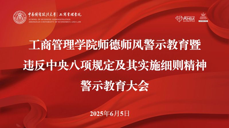 (通讯员杨思琦)2025年6月5日,工商管理学院在文瀚楼南报告厅召开师德师风警示教育暨违反中央八项规定及其实施细则精神警示教育大会。会议以筑牢思想防线、强化责任担当为目标,统筹推进警示教育与战略发展工作。学院党委余小朋书记主持会议,全体院领导班子成员和全院教职工参会。