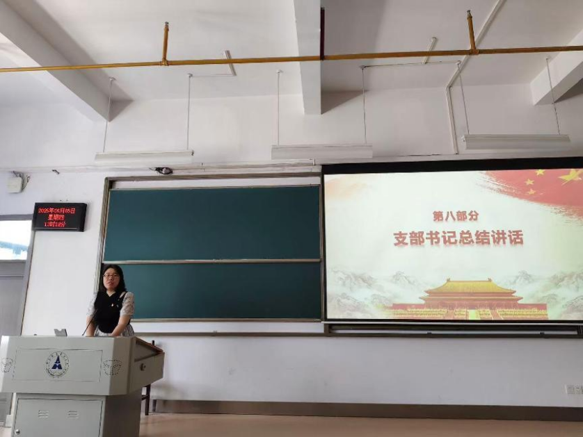 最后,党支部书记范梦宇老师对新接收的7名预备党员表示热烈祝贺,希望他们今后持续以中共党员的标准严格要求自己:一是以思想为灯,要在理论学习上更严格要求自己,要从思想上、行动上主动学习党的先进理论;二是以实干为笔,不要忘记共产党员的初心,真正做到为人民服务,增强责任担当意识;三是以初心为锚,把论文写在祖国的大地上,未来走向人民最需要的地方。