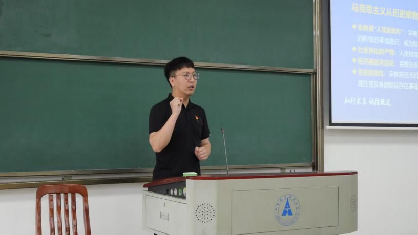 随后,经济贸易本科生第二党支部书记刘振兴围绕“共产党员应树立马克思主义宗教观”主题授课。从高校宗教工作的战略重要性切入,系统解读相关政策法规,结合校园宗教相关常见问题案例,详细阐释马克思主义宗教观内涵,帮助党员明晰立场,增强抵御不良宗教影响的能力。