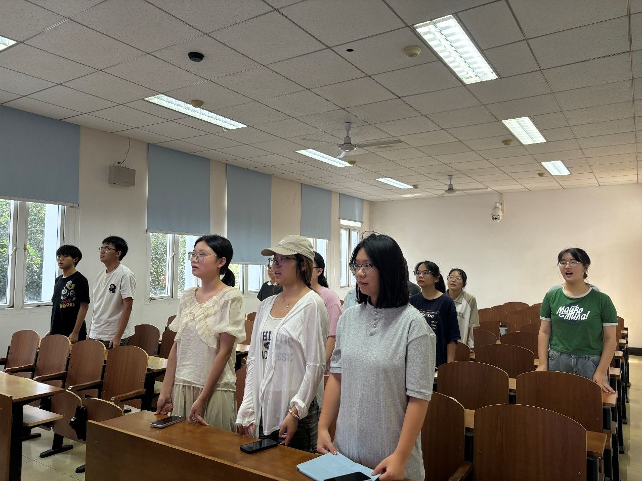 青春正当时,歌声启新程。活动开始,工商2407团支部学子齐唱共青团团歌,歌声嘹亮、富有激情,展现出了团支部学子们朝气蓬勃、昂扬向上的青春风采。