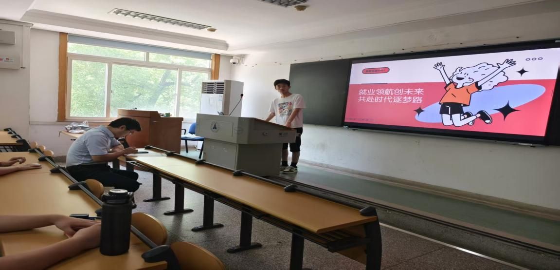 “就业领航创未来,共赴时代逐梦路”,该部分由瞿鑫同学主持。当前就业市场竞争激烈,高校毕业生就业压力与日俱增。大学阶段是学生从校园迈向社会的过渡关键期,同学们对职业规划认知程度不同,部分同学存在职业目标模糊、求职技能欠缺、对行业发展趋势了解不足等问题。同时,时代发展催生新职业、新机遇,也对人才能力提出新要求。为帮助班级同学明晰职业方向,提升就业竞争力,抓住时代就业机遇,班级开展 “就业领航创未来,共赴时代逐梦路” 团日活动,为同学们就业求职赋能。让同学们充分了解就业动态合理规划职业生涯,自觉将自己个人理想与国家发展战略相结合。