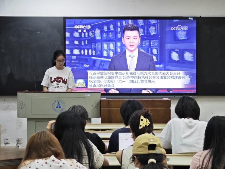 (通讯员 阳馨允 刘金灵)6月19日,工商2402团支部全体同学在文泽104开展团日活动。为引领同学们紧跟时代步伐,本次团日活动由团支书高若茗同学主持召开,以“学习新思想,把握新动态”为主题,通过理论学习等形式,激励青年坚定理想信念,勇担时代使命。