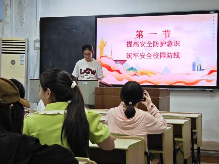 提高安全防护意识,筑牢安全校园防线。高若茗同学为大家举例身边的校园安全事故,教给大家面对安全问题时该如何预防。通过观看校园安全微视频获奖作品,让同学们直观感受到诈骗手段的多样性,也再次提醒各位预防诈骗的重要性。此次活动以案为鉴,有效提升了同学们的安全防范意识和应急处置能力,为构建平安校园奠定了坚实基础。