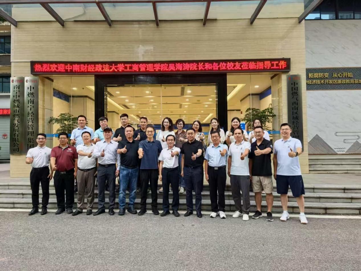 6月28日下午,吴海涛院长带队走访校友企业中燃南宁集团,并会见我校广西校友会会长覃展敏等一行人。本次走访活动在轻松、活泼气氛中展开。首先,吴海涛院长等一行人参观了中燃南宁集团,集团总经理喻明辉对吴海涛院长等人的到来表示热烈欢迎,对中燃集团进行了简短介绍。然后,参加活动的几十位广西校友代表纷纷发言,积极建言学院、学校的发展与改革,部分校友深情回忆当年在校的青葱岁月,他们对母校的感情非常深厚,对学校的未来发展充满信心。吴海涛院长表示,广大广西校友是我校、我院发展的强大动力,学院、学校的发展离不开校友的支持,对校友的建言表示感谢。我校处于改革深水期,改革动力强劲,改革力度超前,改革思路积极,改革的阵痛会带来学校的新生,虽然路途曲折,但是前途光明。未来我院会持续对接广西招生活动,明年的招生活动会继续优化,招生活动会深入到高中的校长和毕业班的班主任,让他们成为我校招生的宣传员、解说员。会后吴海涛院长等一行人和校友代表集体合影留念。