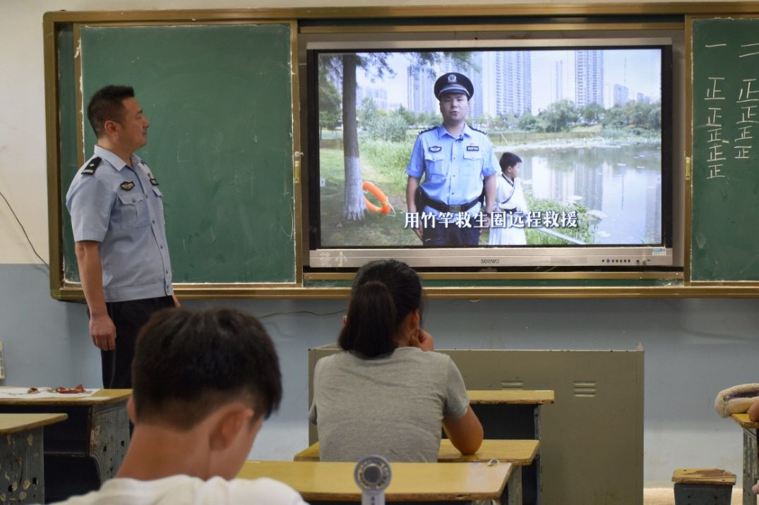 蝉嘶高树,盛夏渐喧。涂镇的同学们在破冰小游戏中迅速拉进了与支教老师间的距离。鄂州市公安局梁子湖区分局涂家垴派出所的民警也到场为孩子们进行了必要的安全知识科普,正式拉开了本次“AI+财商”的特色暑期课程的序幕。