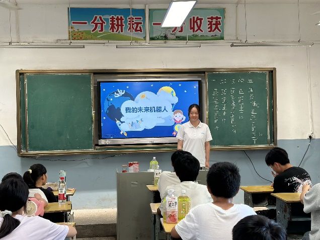 拼贴设计生妙趣,实验团学唤新知。在短短一周的支教活动中,支教老师们还融入了许多特色活动:感受自然、挥洒创意的植物拼贴画,畅想未来、天马行空的机器人设计,科学趣味、启迪智慧的酸碱实验和育人铸魂、培养担当的共青团课。文艺汇演中,孩子们和老师们的联袂表演让人动容,朗朗歌声中,唱尽对未来的无限期待。