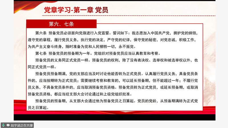 本次活动由陆宇涵同学主持,活动伊始,陆宇涵同学带领支部全体成员重温入党誓词并集中学习《中国共产党章程》,通过这种反复学、持久学的方式,支部成员不仅能够增强自身的党性修养,还能在潜移默化中提升自己的专业素养,以更加饱满的热情和更加扎实的技能,投入到学习和工作中去,为实现中华民族伟大复兴的中国梦贡献自己的力量。