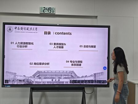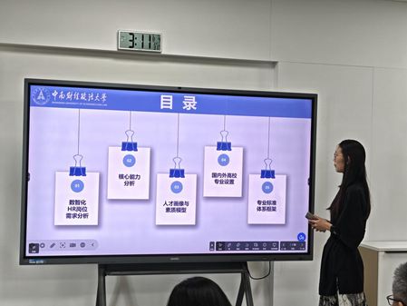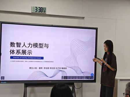 第六组的分享则紧密扎根企业实践,实用性尤为突出。他们一方面结合三峡集团、用友等企业数智化转型案例,精准捕捉人力资源数字化市场规模及企业投入方向,生动解析技术落地路径;另一方面针对本科生适配岗位,设计“共性 + 个性”人才画像,既明确HR基础、数智工具操作等共性能力,又突出不同岗位的专属技能,让培养目标更加清晰具体。