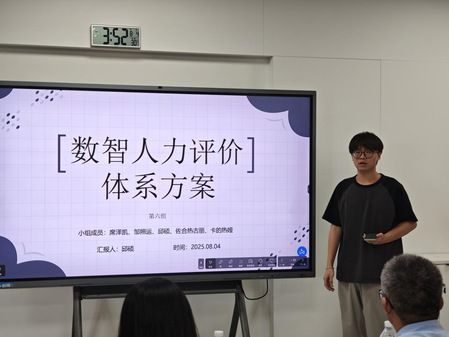 随着主持人清亮的声音响起,活动正式开始。首先进行的是数智人力评价体系设计方案汇报,六个小组依次上台汇报。