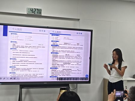 每个小组特派的两名学员依次上台,对经过共同打磨的简历进行讲解。一份份简洁明了、重点突出的简历,不仅展现了同学们对自身的清晰认知,更体现了人力资源管理专业同学在其中发挥的专业价值——他们用专业知识搭建起了一座桥梁,让不同专业的同学都能更好地通过简历展现自我。