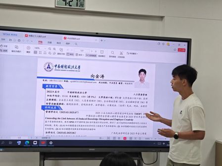 稍作休整后,进入了简历讲解和展示环节。在这一环节中,人力资源管理专业的同学们充分发挥自身专业优势,展现出了极强的专业素养与互助精神。
