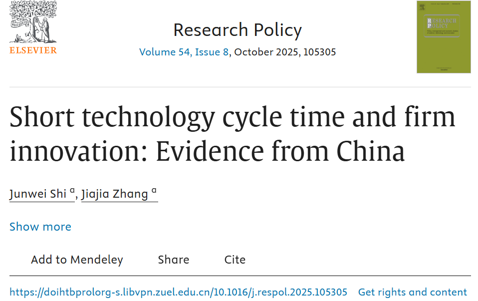 论文信息:Shi, J.W., Zhang, J.J., 2025. Short technology cycle time and firm innovation: Evidence from China. Research Policy 54(8), 105305.
