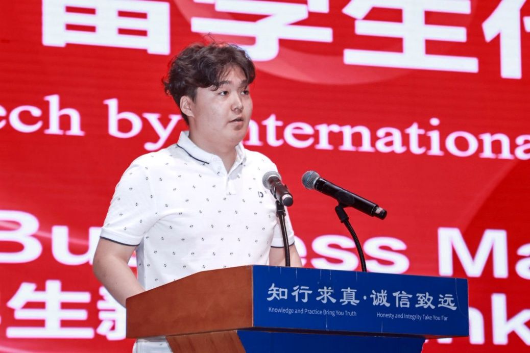 来自蒙古国的留学生代表Munkhbat Bilegmberel表达了对中国的喜爱和在中南大求学的向往,他希望尽快熟悉校园生活,在学校和学院提供的学习平台上,锤炼扎实的专业素养、拓展广阔的国际视野、体验多元的学术环境,在国际化商学院里成长为一名优秀的商科精英。
