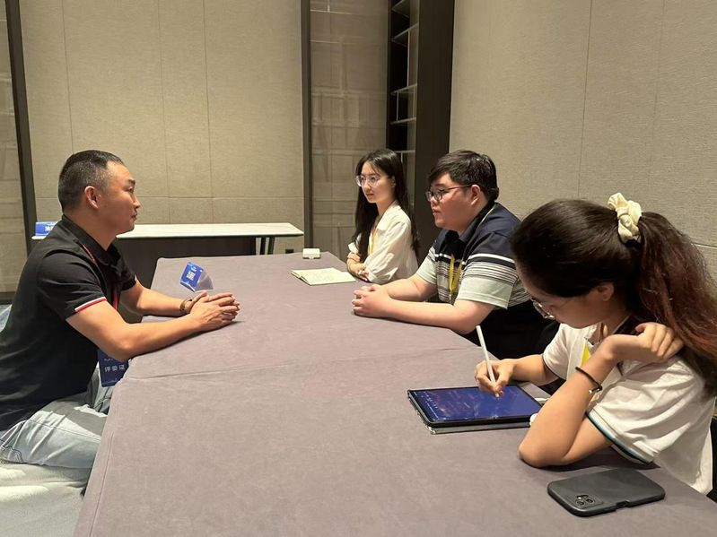 活动当日下午,实践队随带队老师前往路演厅观摩决赛。活动颁奖仪式过后,实践队与深圳市米兰电竞·(中国区)校友会工商分会会长、MBA2012级校友、闰镁科技(深圳)有限公司总经理戴金洲展开深入访谈。戴金洲校友以自身横跨新材料科技创新与应用、液压产品国产化制造、新能源汽车等多领域的经历为切入点,强调“学习与实践是终身不辍的双引擎”——他以服务校友会十年的经历为例,诠释“付出即是获得”的理念,坦言在此过程中不仅积累了珍贵人脉,更收获了远超预期的成长;针对职业规划,他建议学子“打破思维定式,在不确定中寻找确定”,既要顺势洞察行业壁垒,思考发展核心问题,也要聚焦前沿领域,把握机遇;同时,他还分享了自己保持高效状态的秘诀,作为拳击爱好者,他坚持清晨7点起床、8点到岗,常处理国际会议至深夜12点,强调要舍弃无效社交、专注核心事务,以热爱与自律驱动成长。