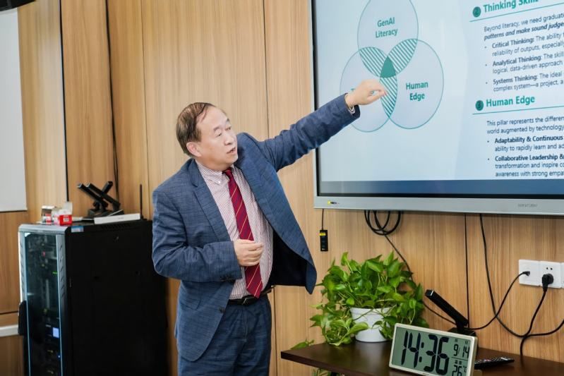 马丁・琼斯教授以GenAI(生成式人工智能)技术为切入点,从国际视角解读AI与商科教育的融合方向,提出在人工智能驱动的时代背景下,生成式人工智能素养、高阶思维技能及人类独特优势的重要价值。他指出,生成式人工智能的快速发展不仅改变了知识获取的传统方式,更对商科人才培养提出全新挑战与机遇;同时强调,商学院需重新审视现有人才培养体系,引导学生树立风险意识,培养具有个人韧性、自我意识和大局观的人才。