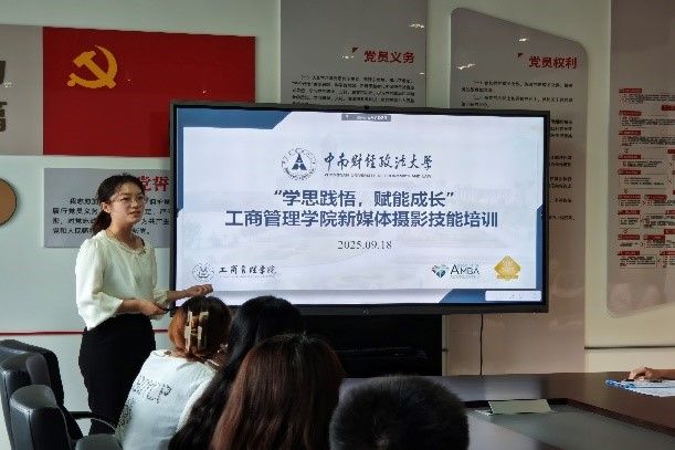 为顺应新媒体时代发展趋势,提升研究生的综合素养与视觉营销实战能力,帮助其在摄影、新闻稿撰写等能力得到提升。2025年9月18日,工商管理学院研究生会新闻中心于下午13时文瀚楼北703教室举办“开镜·学剪·启新航”——商科青年全媒体素养赋能工作坊品牌活动。本次活动由院研究生会新闻中心主任 侯睿欣作为主讲人,工商管理学院众多师生踊跃参与。