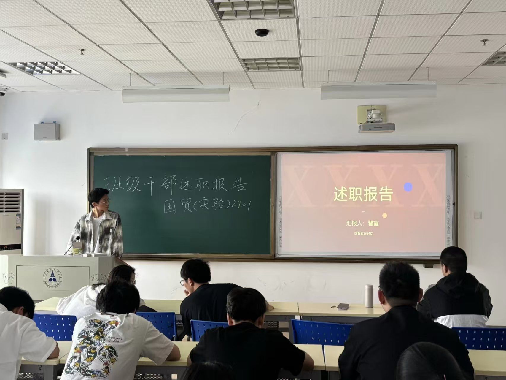 (编辑:吴诚语 摄影:胡晓)2025年9月21日上午,国贸实验2401团支部九月团日活动暨班委述职在文澴楼520教室顺利召开。会议主要由五个理论学习主题和班委述职组成,理论学习主题分别为“勿忘国殇警钟长鸣,矢志复兴青年力行”,“丝路青年同心,交流互鉴同行”,“鉴照峥嵘岁月,书写时代华章”,“青春助力乡村,共绘振兴蓝图”,“青春铸剑为家国,国防固盾护山河”。