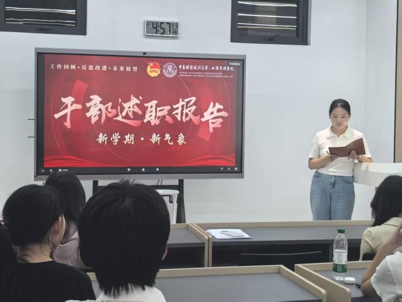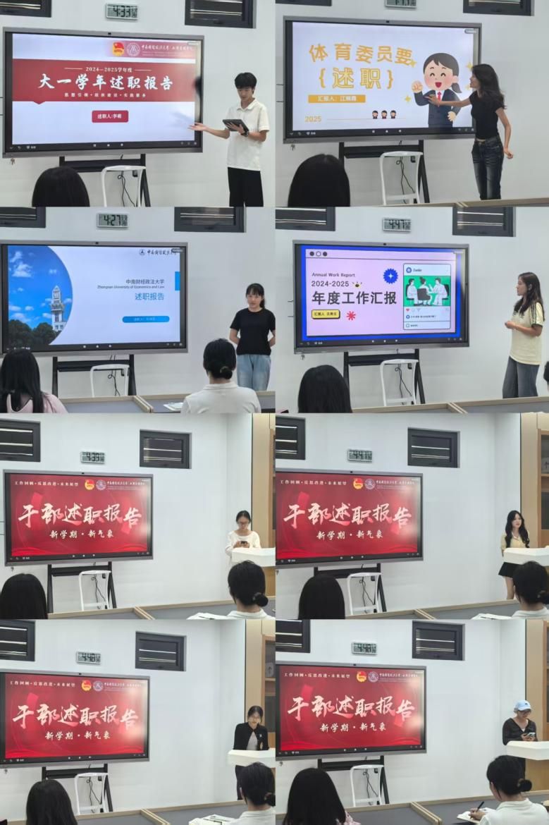 随后,各班干部依次上台述职,从学风建设、活动组织、日常服务等方面,总结上一阶段工作成果与不足,并提出新学期工作计划。进一步明确班级建设方向,凝聚起共同奋进的共识。
