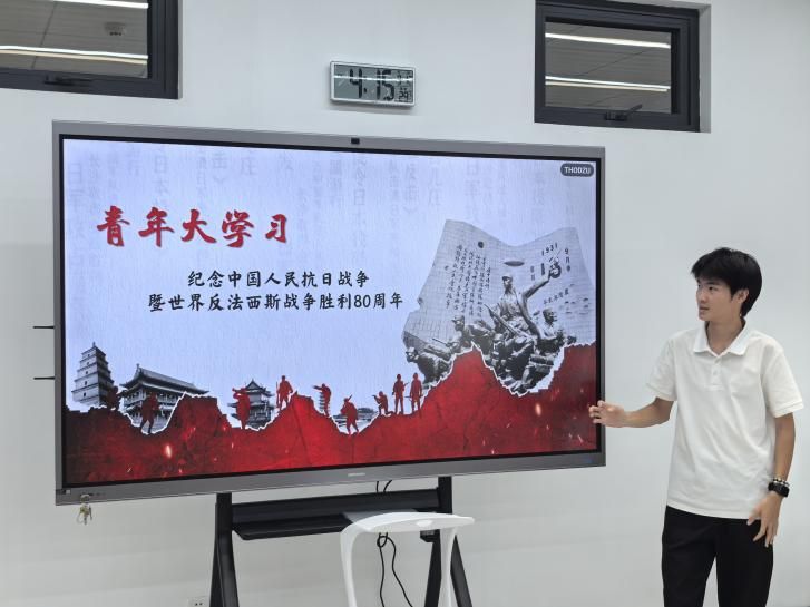 班长刘诗蕊围绕中国人民抗日战争胜利80周年纪念日,结合史料与自身感悟,用鲜活故事唤醒历史记忆,以多维形式筑牢爱国信仰根基,深化团员青年们对“爱国”二字的理解,进一步坚定“强国有我”的信念。