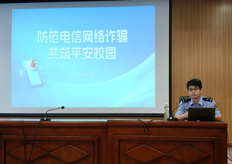 班会伊始,东新公安分局铁箕山派出所反诈队长程龙警官向大家进行反诈宣传。程警官以学校近期处理案例为引入,重点讲解虚假购物、虚假服务、求职陷阱、冒充公检法以及出国留学五种典型类型,向同学们讲解帮信罪的法律判定及其后果,通过案例剖析让学生直观认识到“出租银行卡”“出售手机号”“协助转账”等行为的违法性与危害性。着重强调网络贷款的潜在风险,明确告诫全体同学需树立理性消费观念,警惕“低息贷”“校园贷”等虚假宣传。