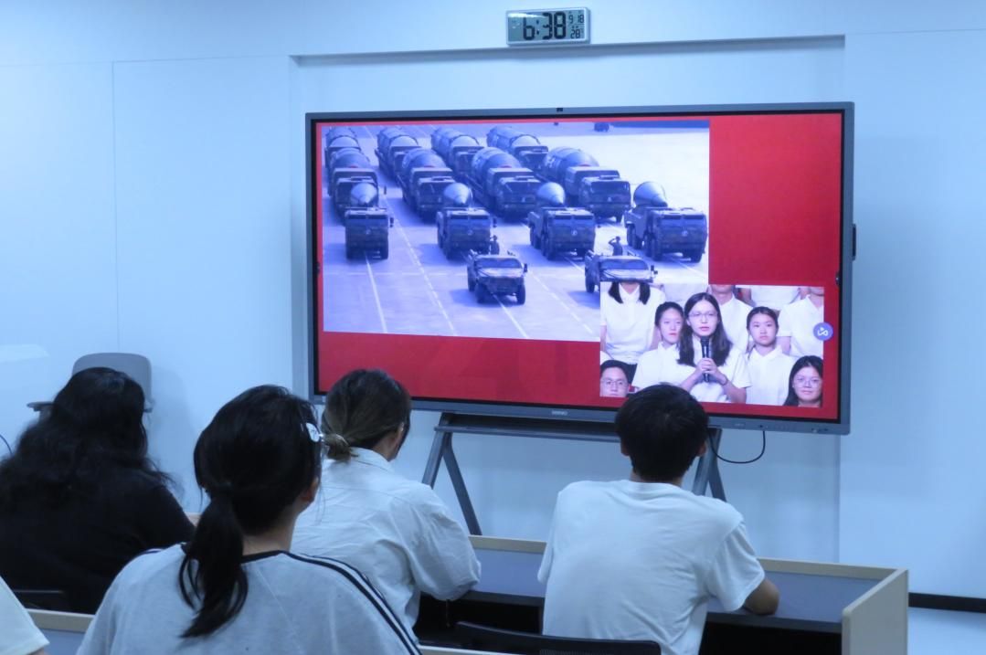 大国风采:阅兵仪式纪实。活动第二项,集体观看阅兵仪式影像资料,屏幕上,整齐划一的受阅方阵迈着铿锵步伐依次走过,先进的武器装备彰显着国家实力,嘹亮的军歌传递出民族自信。同学们全神贯注,目光紧紧锁定在画面上,感受到从九一八事变时的积贫积弱到如今的繁荣强盛,祖国的发展历程充满艰辛与奋斗,作为新时代青年,更要以阅兵仪式中展现的精神为激励,将个人理想融入国家发展大局。