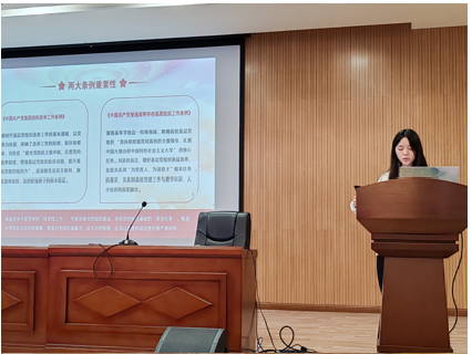 接着吴曦同志领学《中国共产党基层组织选举工作条例》和《中国共产党普通高等学校基层组织工作条例》换届选举相关文件,点明两部条例的定位与核心价值并结合支部实际,重点梳理了选举工作的“刚性要求”。
