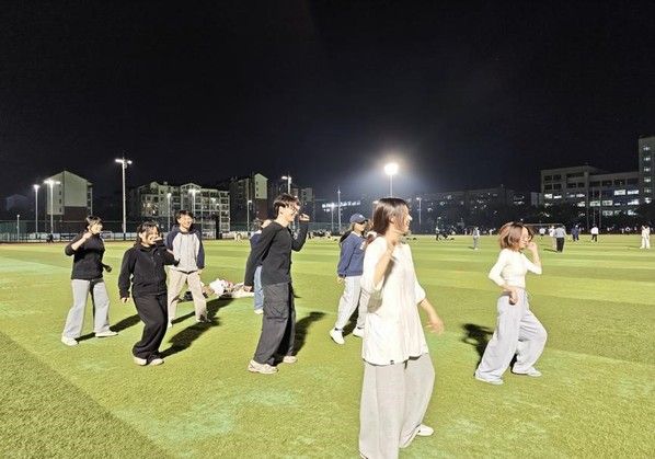 在充满活力的舞蹈过程中,大家跟随着节拍挥洒汗水,期间有舞蹈基础的同学也主动承担起辅助指导的角色,帮助其他同学纠正动作细节、示范标准姿势。朋辈之间的互帮互学拉近了彼此间的距离,让现场洋溢着温馨愉悦的氛围。
