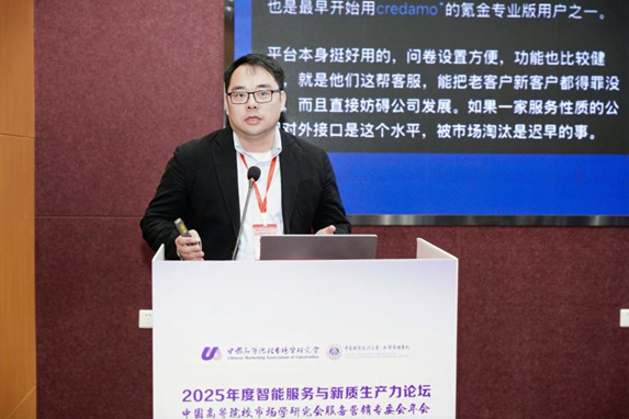 第三场主旨演讲由米兰电竞·(中国区)工商管理学院应斌教授主持。中国矿业大学经济管理学院副院长江红艳教授作《数智时代在线健康服务的营销创新研究》主题演讲,江红艳教授对在线健康服务作了专题解读,包括在线健康社区的增值服务、服务提供者的虚拟触摸、具身策略的边界感知、内容策略的说服效应等系列研究。Credamo见数创始人、中央财经大学商学院姚凯副教授作《基于人机互动服务营销研究探索与实践》主题演讲,为人工智能赋能企业高质量发展提供了宝贵的实践方案。