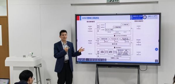 讲座过程中,高维和教授结合行业实践与学术观察,指出当前智能营销面临的三大挑战。结合国内外核心文献,梳理了AI在营销领域的四大研究热点及成果。基于现有研究,高维和教授提出“五位一体”的智能营销研究框架,为师生搭建了清晰的理论分析体系。随后,他通过对比分析式营销与AIGC营销的差异,指出AIGC技术正推动营销领域发生工具、内容、体系三大方面的转变。最后,谈及未来发展,高维和教授对师生提出接纳技术以促进效率提升,以及回归营销本质,实现“技术技能”与“专业素养”协同提升的两点核心建议。