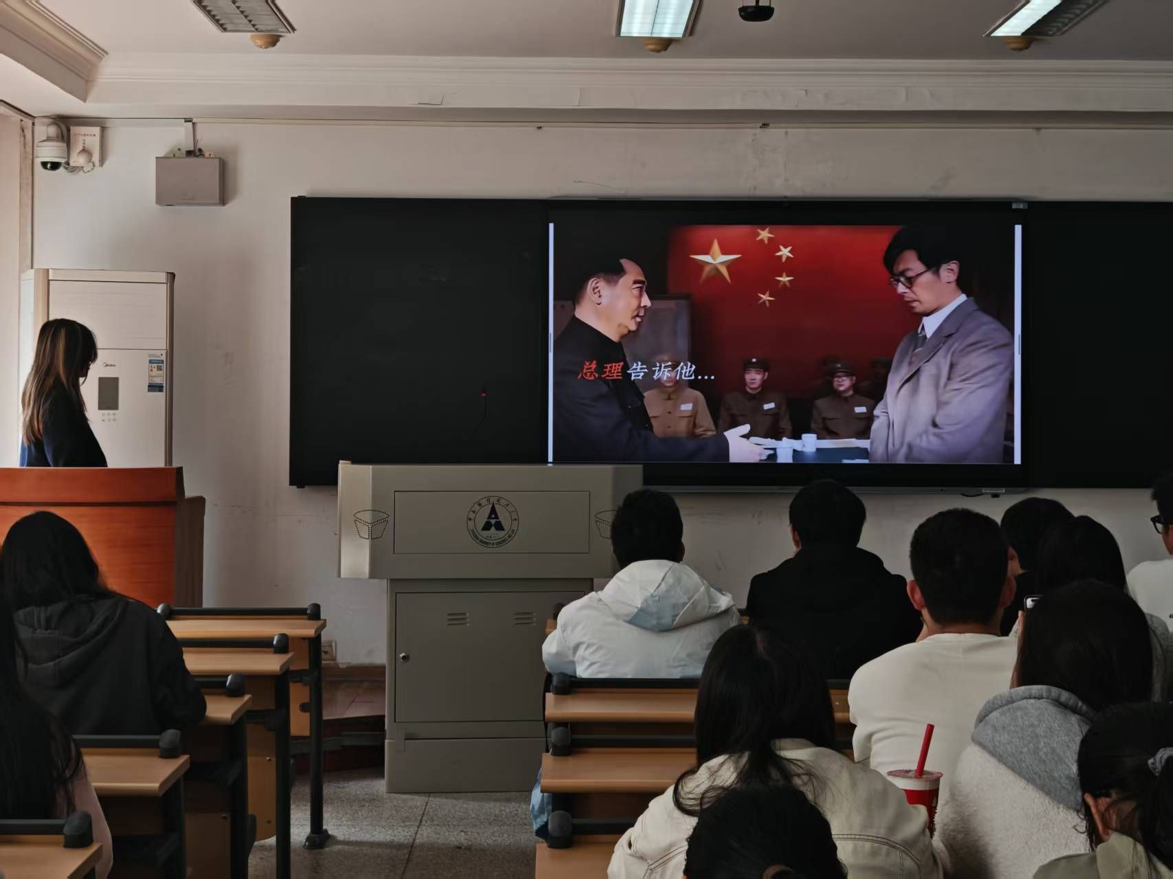 铭记抗美援朝,精神传承励担当。时值抗美援朝胜利纪念日临近,活动播放了《长津湖》等影片的经典片段,再现了志愿军“保家卫国、同生共死”的英雄壮举。主讲人结合历史背景指出,抗美援朝战争是新中国“打得一拳开,免得百拳来”的立国之战,其胜利“抵御了帝国主义扩张,稳定了朝鲜半岛局势,捍卫了亚洲和世界和平”。习近平总书记“抗美援朝是中华民族走向伟大复兴重要里程碑”的论述,让在场学生深刻认识到:和平来之不易,青年需以英雄精神为指引,肩负时代使命。