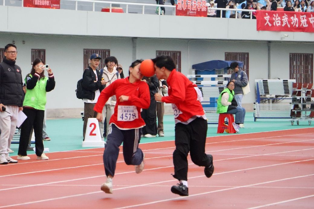 这是关于默契的考验,运动员们沉着冷静,步调一致,尽显协作智慧和拼搏活力。工商运动员步履轻盈如蝶,配合娴熟似弦,在赛场上挥洒意气,以傲人的成绩斩获第一名的桂冠。
