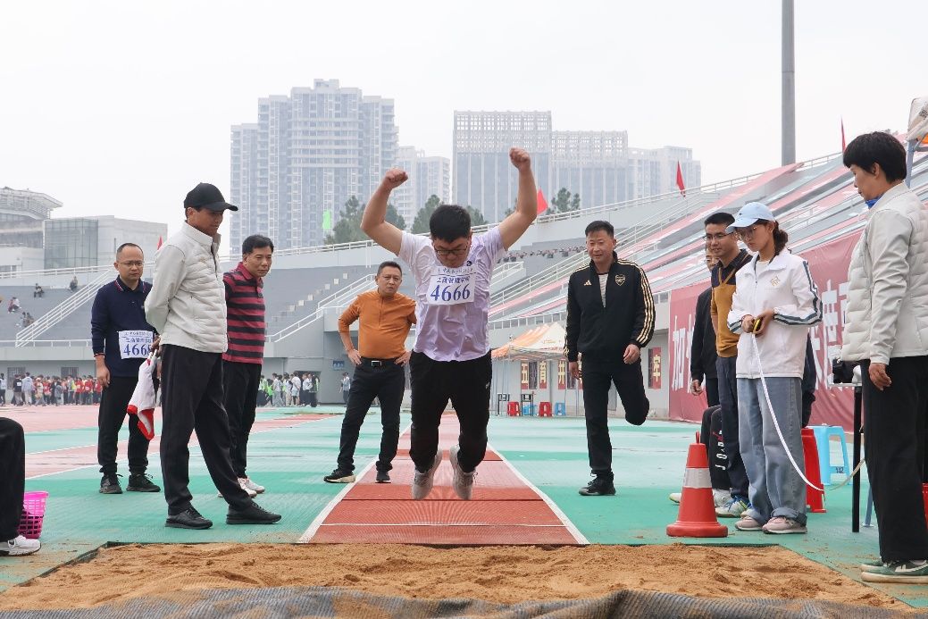 屏息凝神,顷刻间奋力一跃,张永敏老师以实力为工商成功斩获第一。梅丽霞老师勇夺铜牌。男子组亦屡创佳绩,朱汉斌老师一气呵成成功拿下银牌,吴诗荣、盛凯老师也分别跳出第七、第八的好成绩。