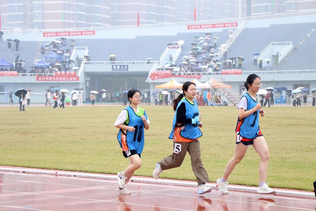 尽管阴雨连绵,她们却从未放缓奔跑的步伐。在女子三级跳远比赛中,我院运动员王泊宁斩获第二名的佳绩,赵雯绮和廖琳亦表现优异,分别取得了第四名和第七名,展现出巾帼不让须眉的气势。