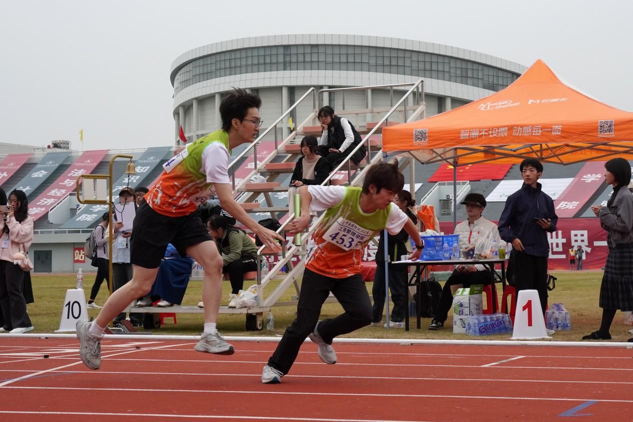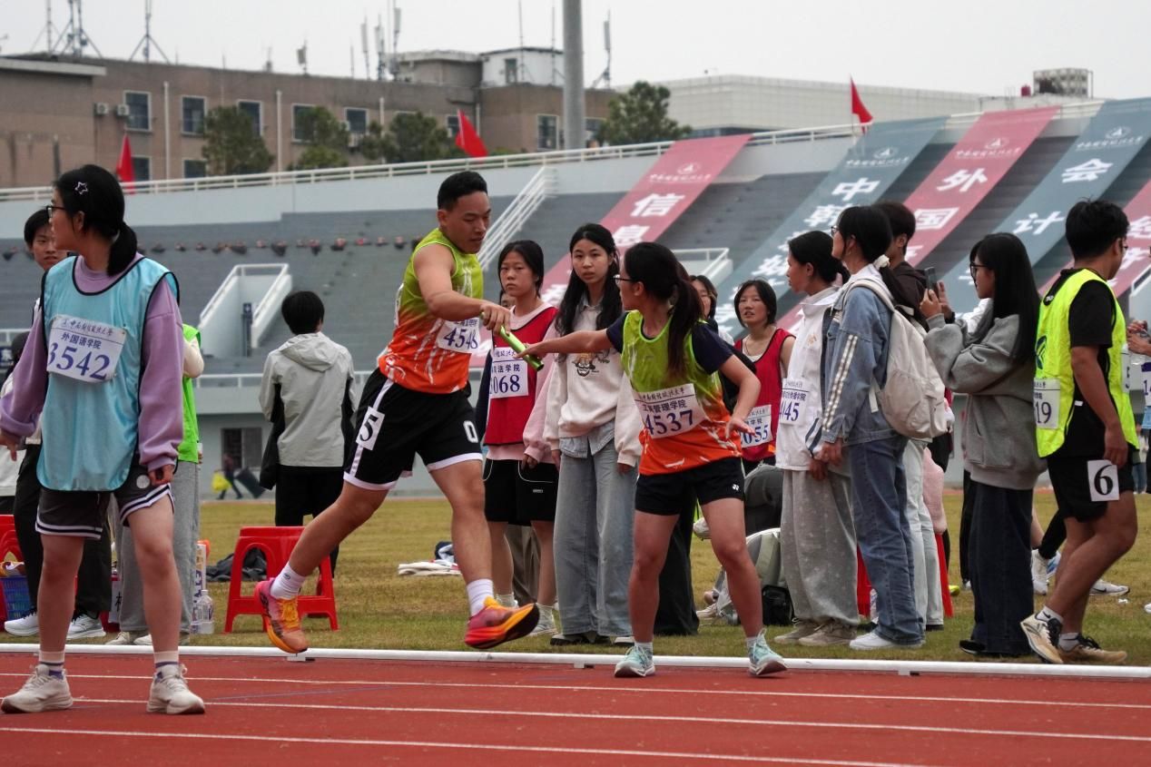 我院健儿心态稳定,在落后的情况下奋起直追,到第三棒已经实现领先。最后一棒顶住压力,与众多对手齐头并进,拿下混合接力的铜牌。