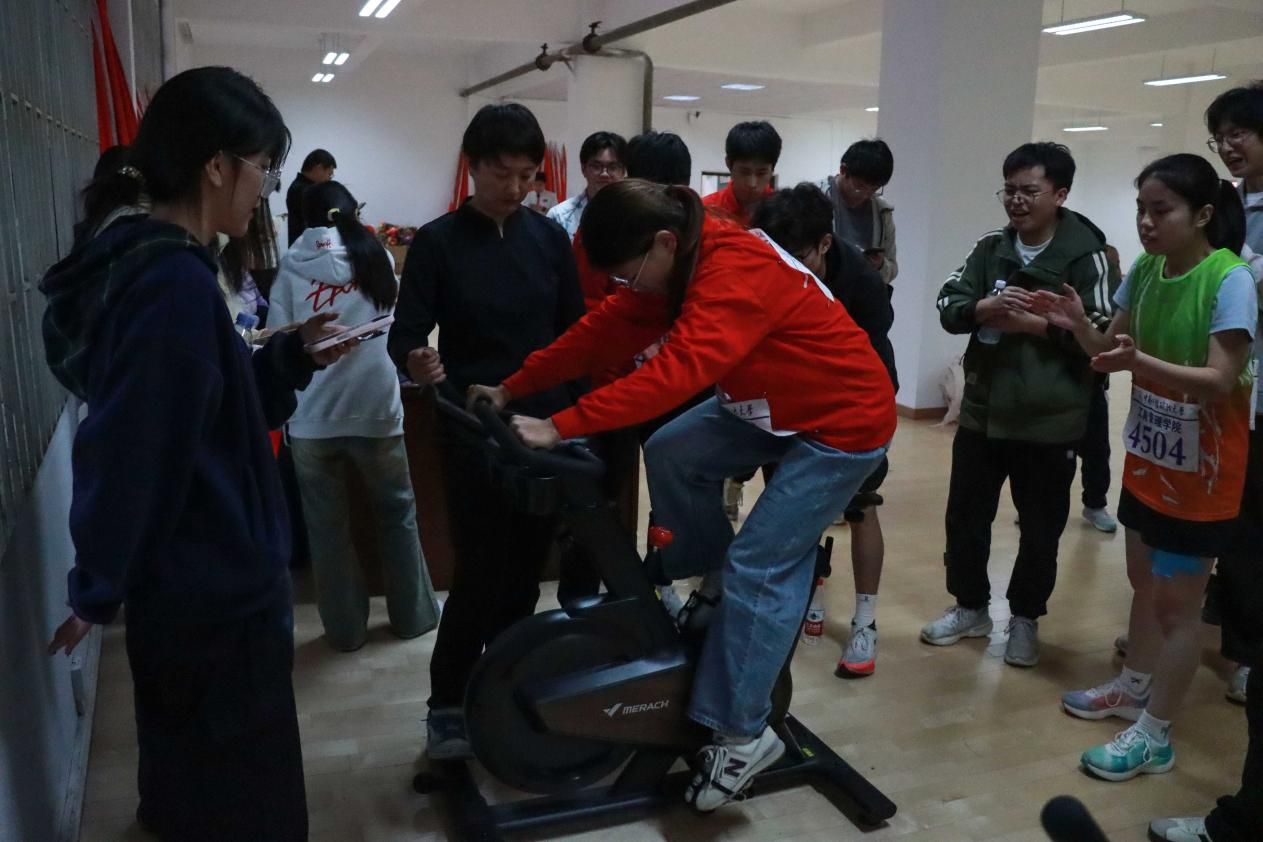 小小的场地中,工商运动员目光坚毅,专注脚下的自行车踏板。每个人都尽己所能地骑行,同时快速完成交接,最终代表工商管理学院拿到第三名的好成绩。
