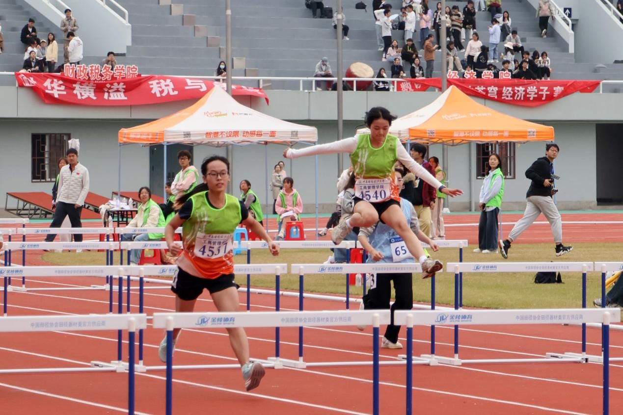 我院薛宇凡凭借着敏捷的反应和出色的技术,每一次跳跃都精准利落,顺利跨过所有栏架,全程保持领先,以15秒61的成绩刷新自己创下的校记录,为工商学院斩获一枚宝贵的金牌。