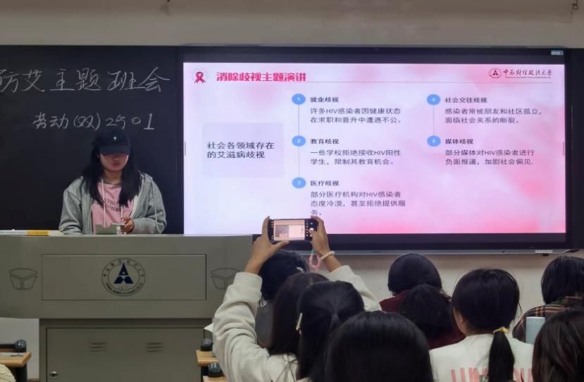 (通讯员 段琳 摄影 王泽钰 祁梦婷)2025年11月16日下午,劳动(双)2501班开展了以“解锁防艾密码,守护青春坦途”为主题的防艾班会。班会内容围绕“什么是艾滋病”“艾滋病与我们的距离”“防艾主题演讲”“艾滋病的发现与治疗”四个部分展开。