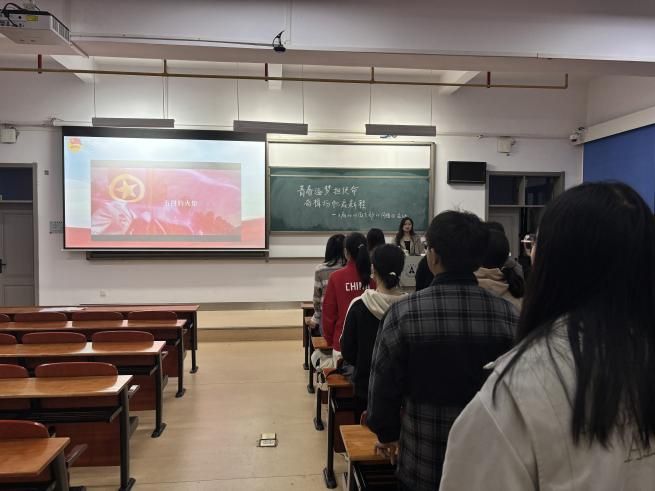 本次活动由张晴瑶同学主持。活动的开始,全体成员起立,以饱满的状态一起唱响了中国共青团团歌《光荣啊,中国共青团》,歌声慷慨激昂,振奋人心,展现了同学们对共青团的热爱以及作为共青团员强烈光荣感与使命感。