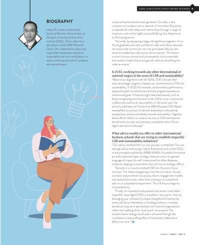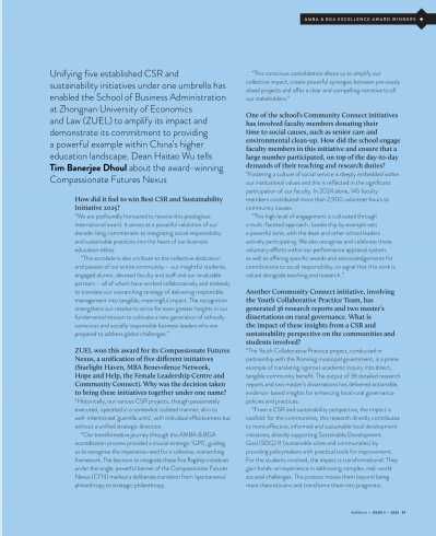 AMBA&BGA全球商科卓越奖由国际学术界与业界精英联合评审,以标准严苛著称。学院此次获奖,意味着我院在责任管理教育领域的实践,已从“本土化探索”迈向“全球化认可”,成为全球商科院校参考的重要样本。而《AMBA Ambition》是英国工商管理硕士协会(The Association of MBAs,简称AMBA)的旗舰杂志,以其对责任管理、数字化转型、领导力培养、可持续创新等前沿议题的深度探讨,成为全球商科教育的趋势风向标。