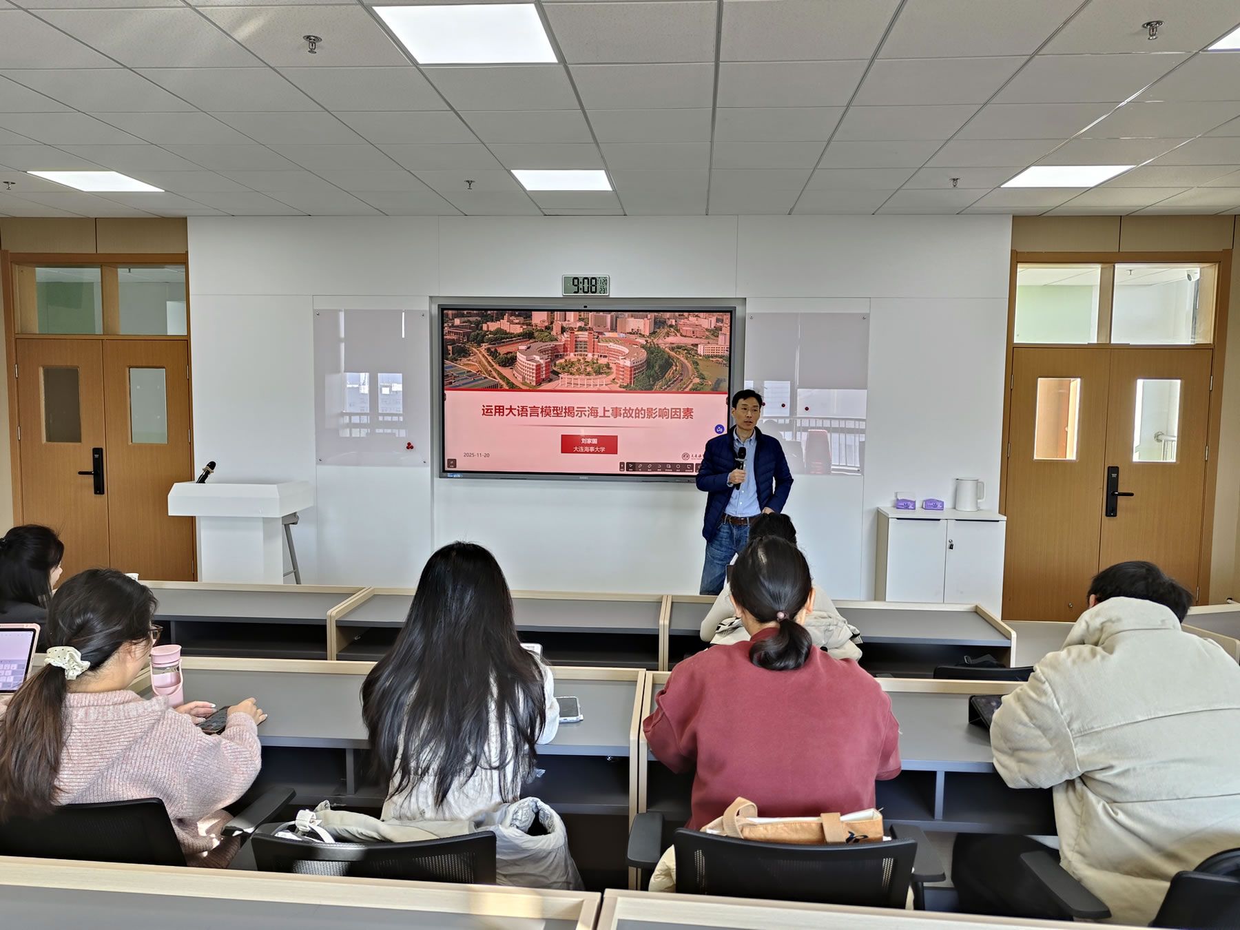 刘家国教授深入探讨大语言模型对海上交通事故的影响因素,运用数据驱动方法,结合大语言模型对海上交通事故的影响因素进行系统分析。首先采用DeepSeekV3从事故报告中自动提取人员、船舶、管理、环境以及时间和空间等关键维度数据。在此基础上,通过N-K模型识别因素之间的耦合风险,结果表明四因素耦合情形风险最高,其中人、船、管理是主导性因素,环境因素在特定事故类型中影响突出。进一步地结合时间与空间开展了相关分析,研究最终构建动态协同治理框架,为海上运输安全管理提供科学依据。讲座中,刘家国教授结合自身科研和工作实践经历,倡导大家多关注时政热点,且要善于把时政热点融入自身科研工作中。