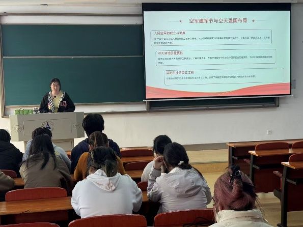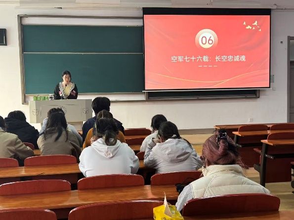 活动最后,“擎鹰击长空之志,铸忠诚护国之魂” 议程将现场氛围推向高潮。活动结合人民空军发展历程,深入解读了空军精神的丰富内涵。从戈壁滩上守护 “为人民服务” 航标的感人故事,到新时代空军新锐重器的惊艳亮相,从先辈们 “空中拼刺刀” 的英勇无畏,到当代官兵苦练精飞的坚守执着,让团员青年深刻感悟到人民空军 “拥政爱民、苦练精飞、锐意创新” 的精神密码。大家纷纷表示,要传承红色基因,厚植爱国情怀,积蓄奋斗力量,为保卫祖国、建设祖国时刻准备着。