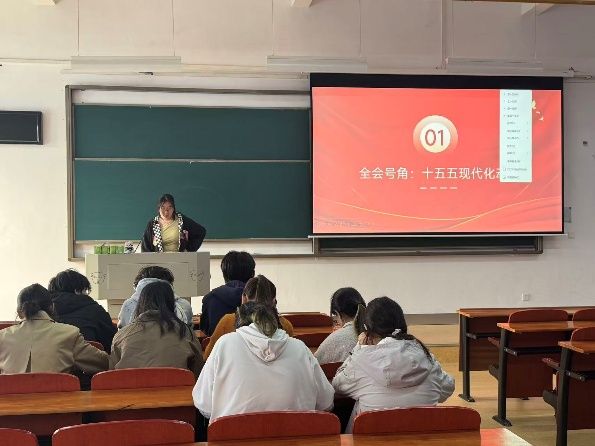活动开篇,“万里征程再出发,青春作笔绘宏图” 议程拉开序幕。现场通过图文展示、专题解读等形式,系统呈现党的二十届四中全会精神核心内容,重点围绕中国式现代化这一中心任务展开深入学习。主讲人结合全会对 “十五五” 时期的战略部署,生动阐释了青年一代在推进现代化产业体系建设、实现共同富裕等重大任务中的使命担当,引导团员青年将个人理想融入国家发展大局,以磅礴青春力量为中国式现代化建设添砖加瓦。