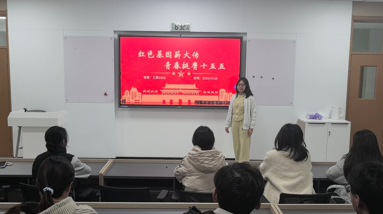(通讯员 张子月 摄影 李亭逸 张子月)为深入学习贯彻党的二十届四中全会精神,传承红色基因、凝聚青春力量,工商2406团支部于11月25日晚在文瀚601教室开展以“红色基因薪火传,青春挺膺十五五”为主题的11月团日活动。活动由团支书李佳欣主持,工商2406团支部全体同学出席。