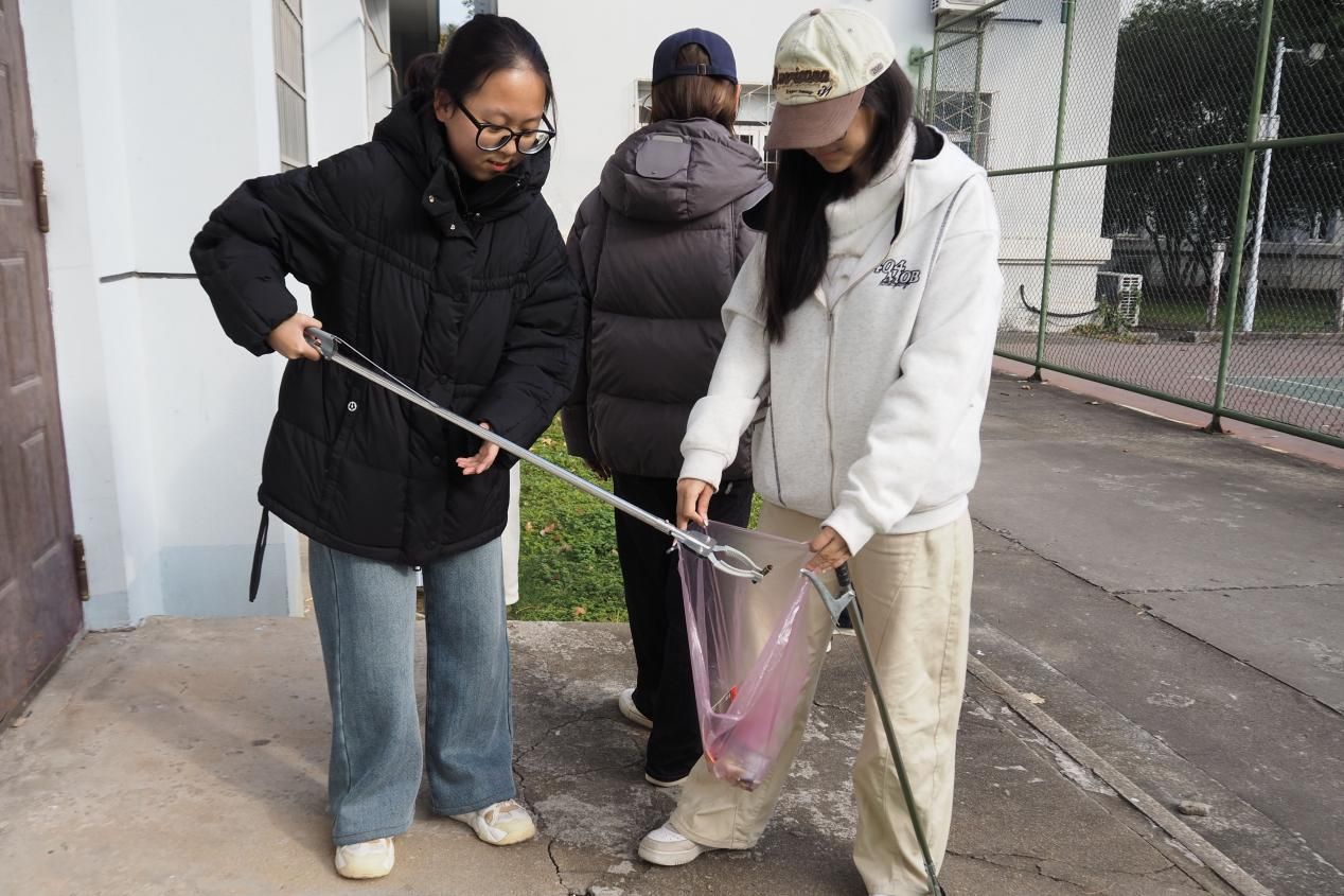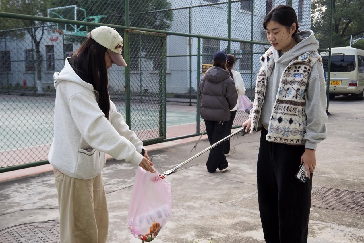活动现场,志愿者们分工协作、默契配合。大家手持清洁工具,对路面垃圾、绿化带内的白色垃圾、烟头纸屑及墙角缝隙中的顽固杂物展开 “地毯式” 清理。志愿者们忙碌的身影穿梭在校园的林荫道与绿化带间,致力于营造整洁的校园环境。